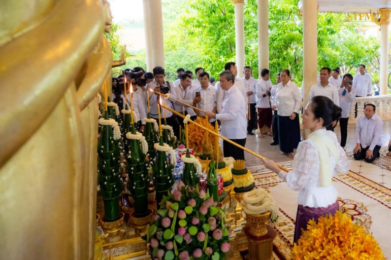 ខេត្តកំពង់ស្ពឺ ៖ ព្រឹកថ្ងៃចន្ទ ១៥រោច ខែភទ្របទ ឆ្នាំម្សាញ់ សប្តស័ក ពុទ្ធសករាជ ២៥៦៩ ត្រូវនិងថ្ងៃទី២២ ខែកញ្ញា ឆ្នាំ២០២៥ សម្តេចធិបតី ហ៊ុន ម៉ាណែត នឹងលោកជំទាវព្រមទាំងថ្នាក់ដឹកនាំរាជរដ្ឋាភិបាល បានអញ្ចើញចូលរួមពិធីបុណ្យភ្ជុំបិណ្ឌ សូត្រមន្តរាប់បាត្រ នៅវត្តហរិរក្សរាជិនី ហៅវត្តវាំងចាស់ ក្រុងឧត្តុង ខេត្តកំពង់ស្ពឺ ។