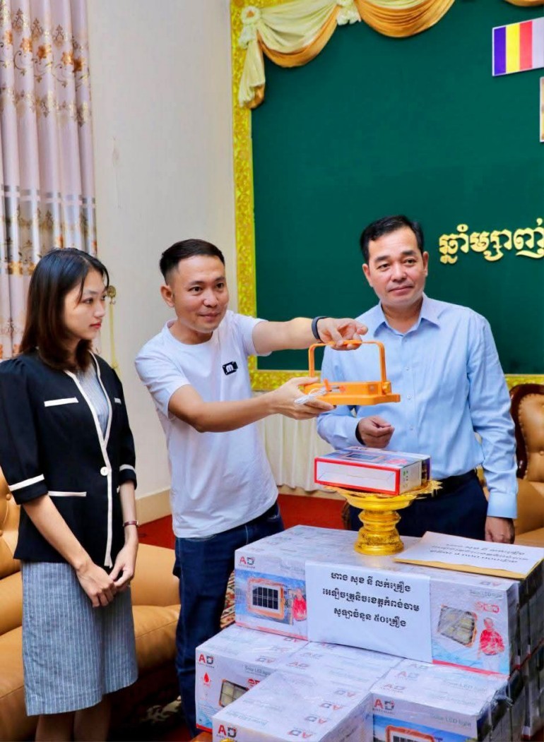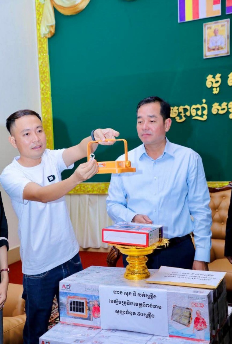 (កំពង់ចាម) :សមរភូមិក្រោយ ផ្សាភ្ជាប់នឹងសមរភូមិមុខ, ឯកឧត្តម អ៊ុន ចាន់ដា អភិបាល នៃគណៈអភិបាលខេត្តកំពង់ចាម និងឯកឧត្តម ខ្លួត ផន ប្រធានក្រុមប្រឹក្សាខេត្ត នាព្រឹកថ្ងៃទី ២៦ ខែកញ្ញា ឆ្នាំ២០២៥ បានអញ្ជើញប្រគល់ Power Bank ប្រើពន្លឺព្រះអាទិត្យ ប្រគល់ជូនមេបញ្ជាការតំបន់ប្រតិបត្តិការសឹករងកំពង់ចាម ចំនួន 50គ្រឿង និងថវិកាមួយចំនួន ដែលជាការឧបត្ថម្ភពីហាងលក់គ្រឿងអេឡិចត្រូនិច សុខ នី ស្ថិតនៅសាលាខេត្តកំពង់ចាម ៕