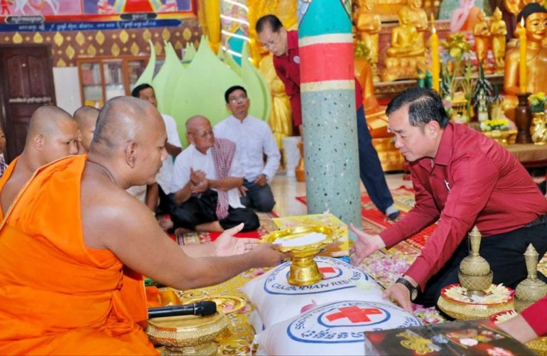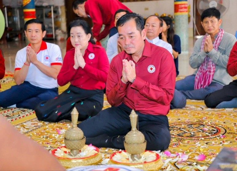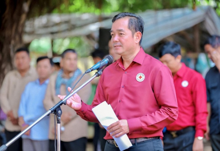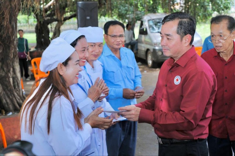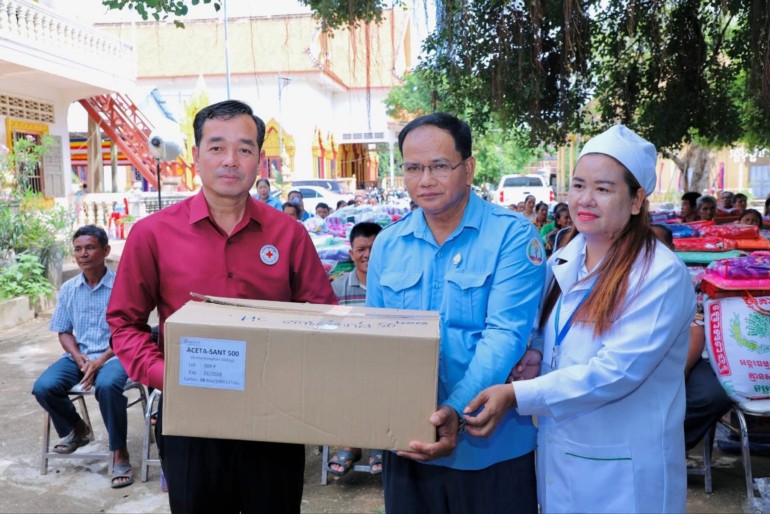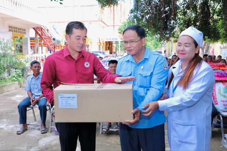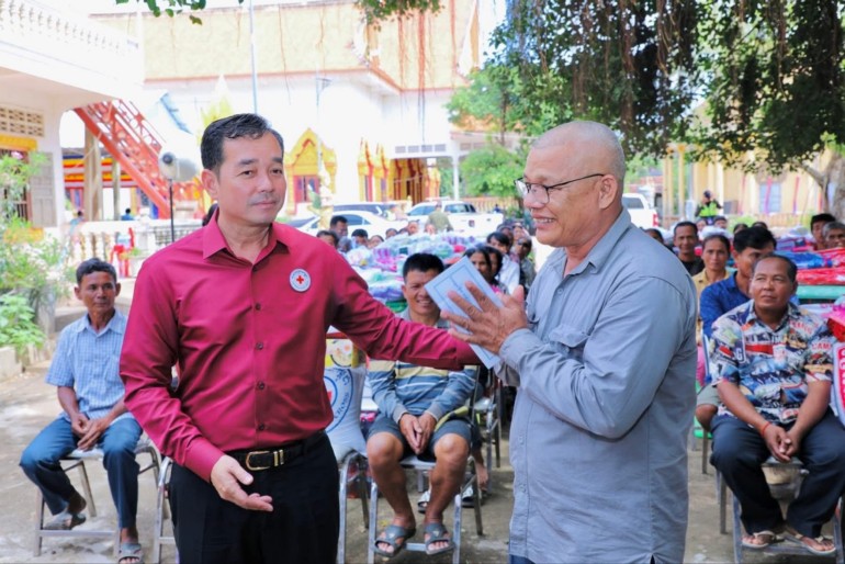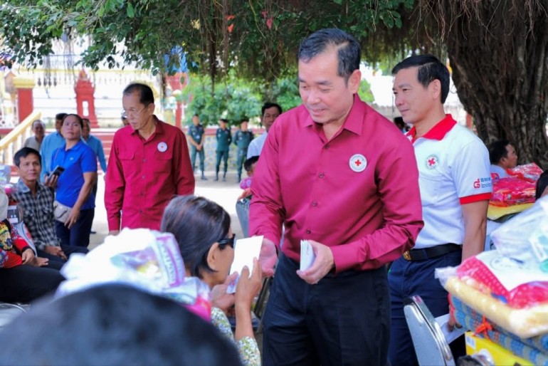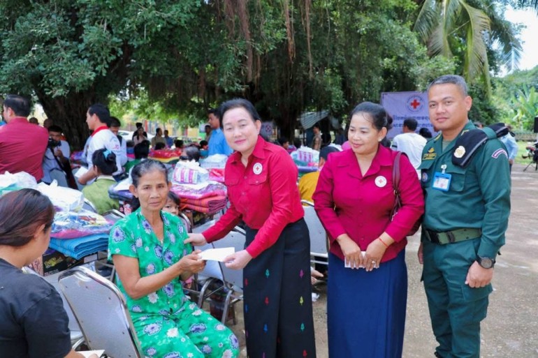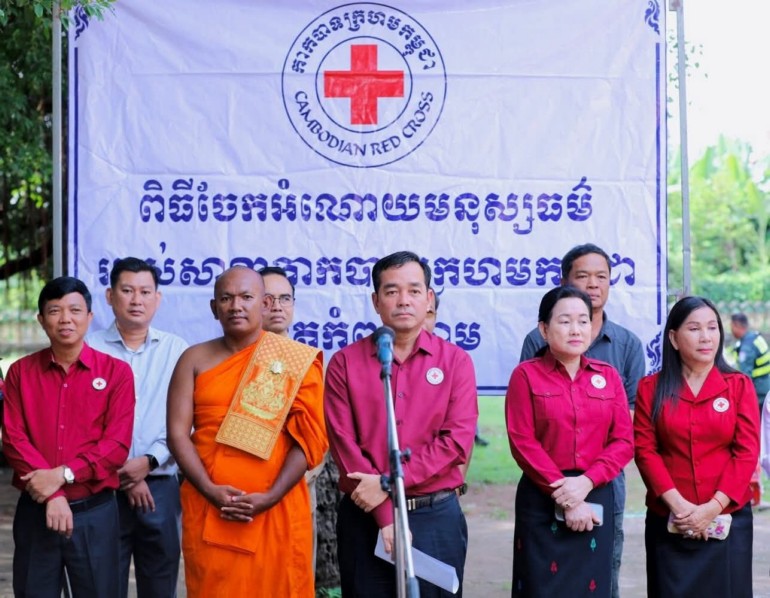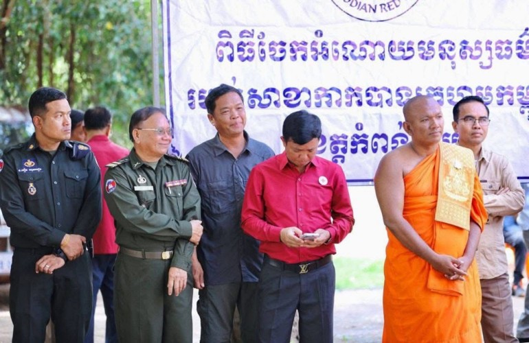(កំពង់ចាម): ឯកឧត្តម អ៊ុន ចាន់ដា ប្រធានគណៈកម្មាធិការសាខាកាកបាទក្រហមកម្ពុជាខេត្តកំពង់ចាម បានដឹកនាំ សមាជិក សមាជិកា កាកបាទក្រហមខេត្ត បាននាំយកអំណោយមនុស្សធម៍របស់ សម្តេចកិត្តិព្រឹទ្ធបណ្ឌិត ប៊ុន រ៉ានី ហ៊ុនសែនហ៊ុន សែន ផ្តល់ជូនដល់ប្រជាពលរដ្ឋរងគ្រោះដោយទឹកជំនន់ចំនួន ៥៤គ្រួសារ រស់នៅស្រុកកំពង់សៀម ខេត្តកំពង់ចាម ដើម្បីចូលរួមកាត់បន្ថយការលំបាក និងជួយសង្គ្រោះប្រជាពលរដ្ឋពីគ្រោះធម្មជាតិ។