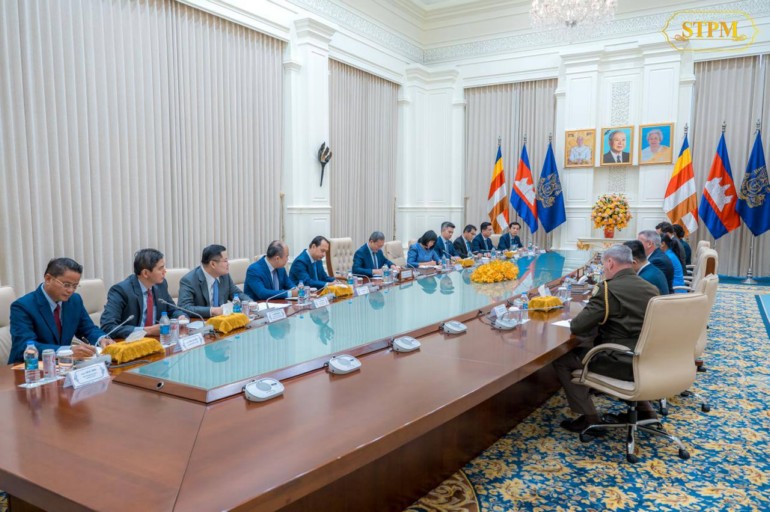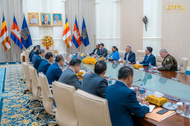 ​នា​ព្រឹក ថ្ងៃទី​៤ ខែវិច្ឆិកា ឆ្នាំ​២០២៥ នៅ​វិមាន​សន្តិភាព​, សម្តេច​មហា​បវរ​ធិបតី ហ៊ុន ម៉ា​ណែ​ត នាយករដ្ឋមន្ត្រី នៃ​ព្រះរាជាណាចក្រ​កម្ពុជា បានអនុញ្ញាត​ឱ្យ គណៈប្រតិភូ​សហរដ្ឋអាមេរិក ដែល​ដឹកនាំ​ដោយ ឯកឧត្តម Michael George DeSombre ឧបការី​រដ្ឋមន្ត្រី​ការបរទេស សហរដ្ឋអាមេរិក ទទួលបន្ទុក​តំបន់​អាស៊ី​បូព៌ា និង​ប៉ាស៊ីហ្វិក ចូលជួប​សម្តែង​ការគួរសម និង​ពិភាក្សា​ការងារ​។​