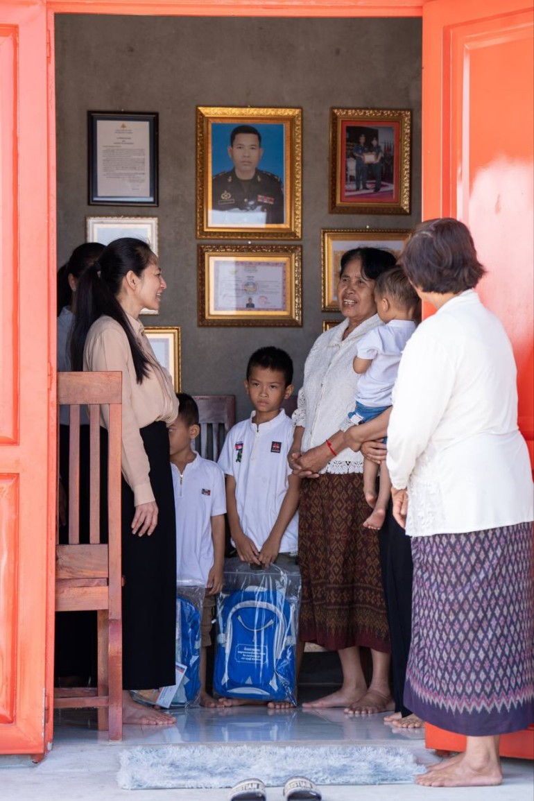 ទន្ទឹមនឹងនេះ លោកជំទាវបណ្ឌិត បាននាំយកមកជាមួយនូវអំណោយរបស់ សម្តេចធិបតី និងលោកជំទាវបណ្ឌិត មានដូចជាថវិកា សម្ភារៈប្រើប្រាស់ និងគ្រឿងឧបភោគបរិភោគ ជូនដល់ក្រុមគ្រួសារនៃសព ដើម្បីជួយសម្រួលដល់ជីវភាពរស់នៅប្រចាំថ្ងៃ។