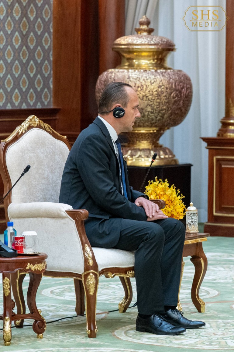 នៅវិមានសាមគ្គីភាព នៃព្រឹទ្ធសភា នាព្រឹកថ្ងៃព្រហស្បតិ៍ ១កើត ខែចេត្រ ឆ្នាំម្សាញ់ សប្ដស័ក ពុទ្ធសករាជ ២៥៦៩ ត្រូវនឹងថ្ងៃទី១៩ ខែមីនា ឆ្នាំ២០២៦ សម្តេចអគ្គមហាសេនាបតីតេជោ ហ៊ុន សែន ប្រមុខរដ្ឋស្តីទីនៃព្រះរាជាណាចក្រកម្ពុជា បាន អនុញ្ញាតឱ្យ ឯកឧត្តម អេឡិចសិនដឺ មីខូវស៊ិន (Alexander Micovčin) ឯកអគ្គរដ្ឋទូតថ្មីនៃសាធារណរដ្ឋស្លូវ៉ាគី ប្រចាំនៅកម្ពុជា ចូលជួបនិងប្រគល់សារតាំង។