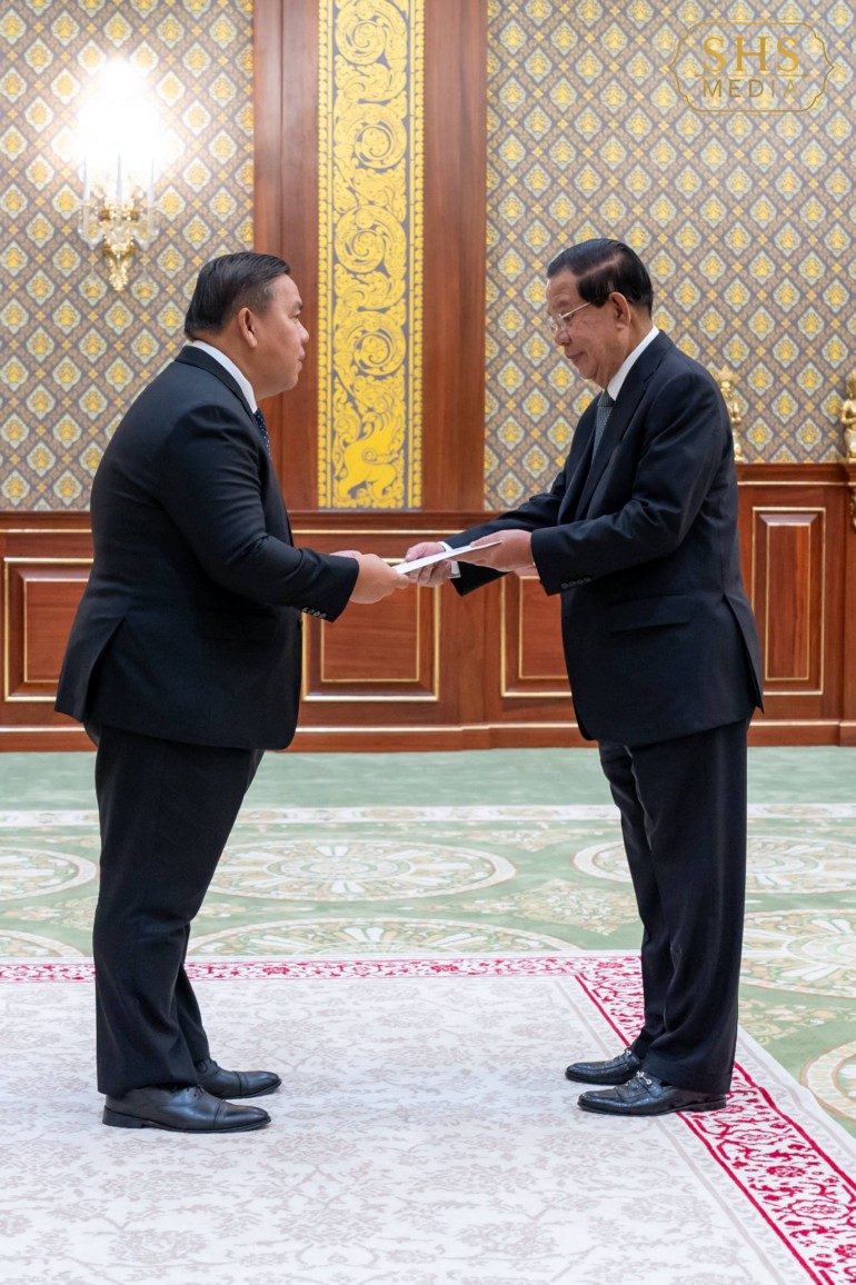 នៅវិមានសាមគ្គីភាពនៃព្រឹទ្ធសភា នាព្រឹកថ្ងៃអង្គារ ៦កើត ខែចេត្រ ឆ្នាំម្សាញ់ សប្តស័ក ព.ស.២៥៦៩ ត្រូវនឹងថ្ងៃទី២៤ ខែមីនា ឆ្នាំ២០២៦ សម្តេចអគ្គមហាសេនាបតីតេជោ ហ៊ុន សែន ប្រមុខរដ្ឋស្តីទីនៃព្រះរាជាណាចក្រកម្ពុជា បានអនុញ្ញាតឱ្យ ឯកឧត្តម Sonexay Vannaxay ឯកអគ្គរដ្ឋទូតថ្មីនៃសាធារណរដ្ឋប្រជាធិបតេយ្យប្រជាមានិតឡាវ ចូលជួប និងប្រគល់សារតាំង